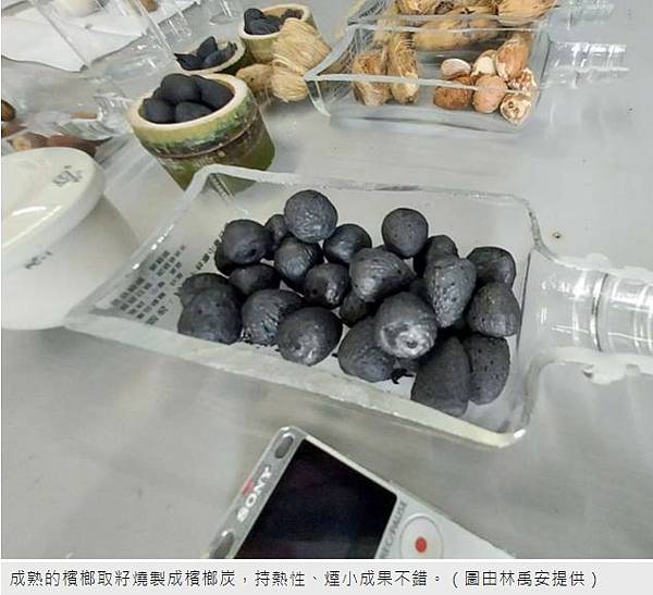 成熟的檳榔取籽燒製成檳榔炭,持熱性、煙小成果不錯。(圖由林禹安提供)