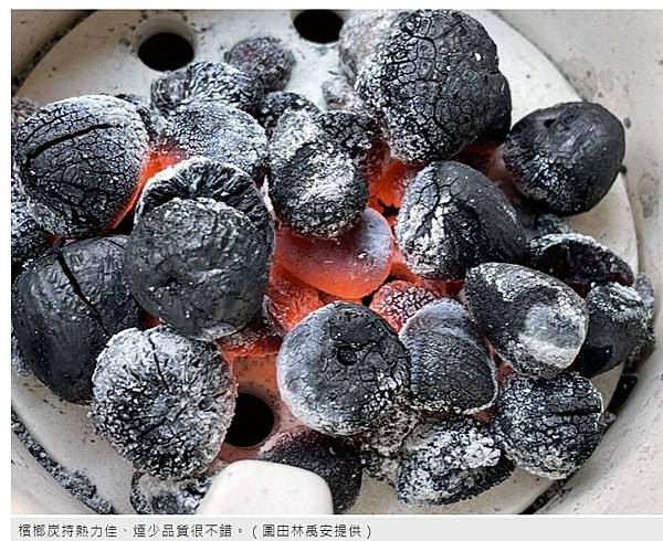 檳榔炭持熱力佳、煙少品質很不錯。(圖由林禹安提供)