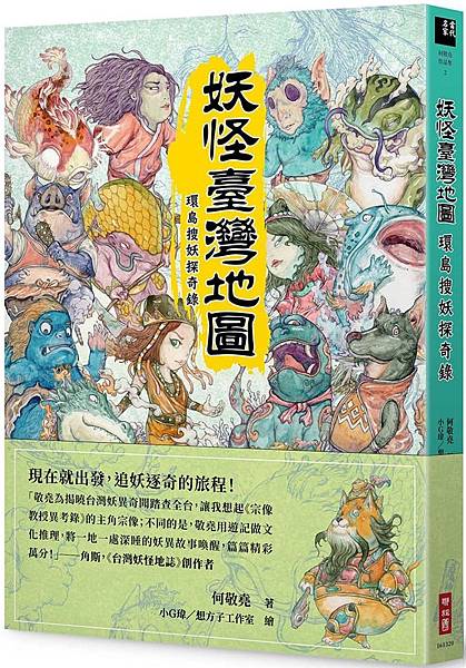 《妖怪臺灣地圖:環島搜妖探奇錄》,5幅全彩跨頁台灣妖怪出沒地圖+人氣繪師小G瑋設計15隻可愛妖怪;60篇奇景奇事,何敬堯親自踏查,足跡遍布台灣北、中、南、東、離島!