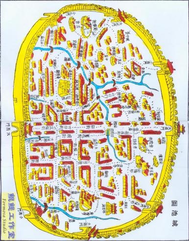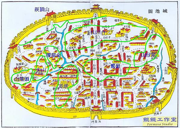 清道光年間,堪輿師閔光中以<台灣府城龍局>一文介紹府城地理位置與格局分布: