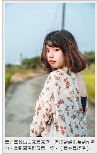 葉亦真雖出自家暴家庭,但將創傷化為創作動力,拿到國際影展第一獎。(葉亦真提供)