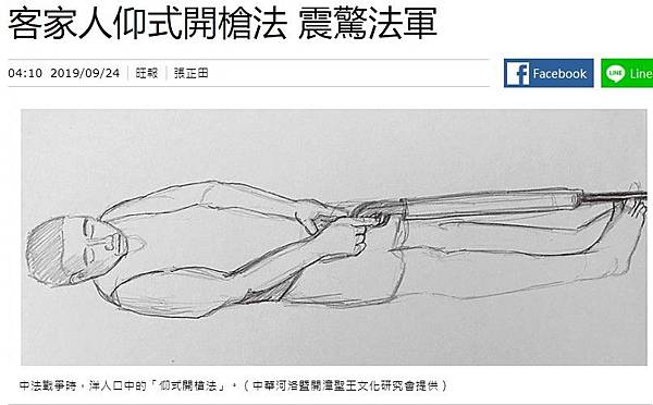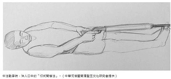 中法戰爭時,洋人口中的「仰式開槍法」。(中華河洛暨開漳聖王文化研究會提供)http://bit.ly/2mlaAXt