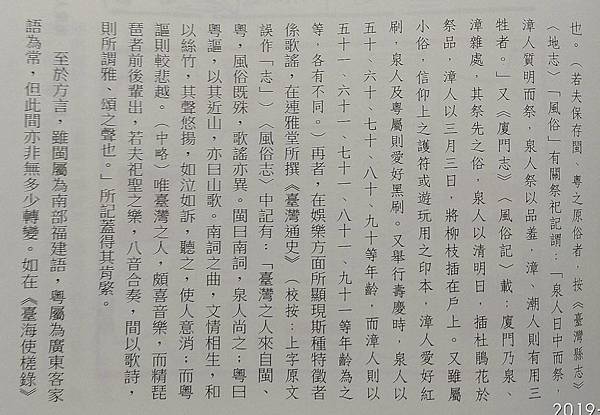 大宗則合同姓而建,各置祀田,公推一人理之,或輪流主之。凡祀田不得私自變賣。無宗詞者祭於家。家祭之禮,載於歲時。泉人日中而祭,漳人、潮人質明而祭