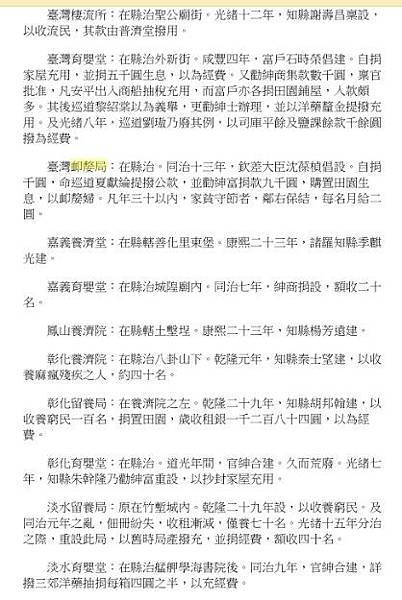 康熙二十三年,台、鳳、諸三邑已分別由各縣知縣創設養濟院,以安居鰥寡孤獨無告者,但似終廢止,後來乾隆、嘉慶及光緒年間亦有官紳設置。