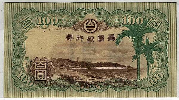 百圓券前、後面圖案有檳榔樹,台語所說的〞青仔欉〞,指的就是這張鈔票,在當時算是相當大的幣值。