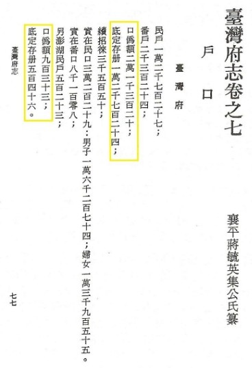 (4)正式記載在蔣毓英的「台灣府志」第77頁: