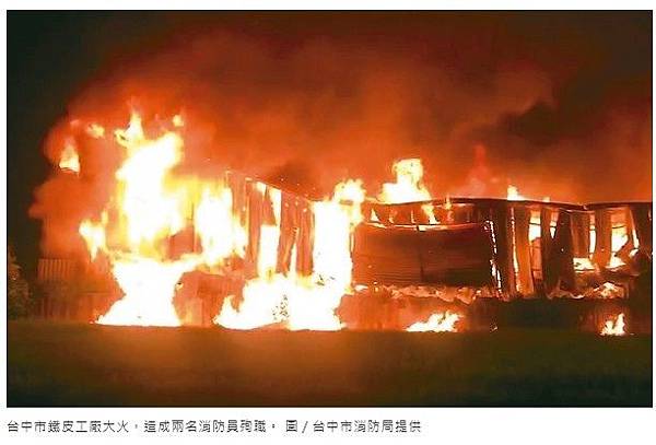 台中市鐵皮工廠大火,造成兩名消防員殉職。 圖/台中市消防局提供