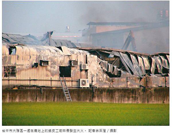 台中市大雅區一處在農地上的鐵皮工廠昨晨發生大火。 記者余采瀅/攝影