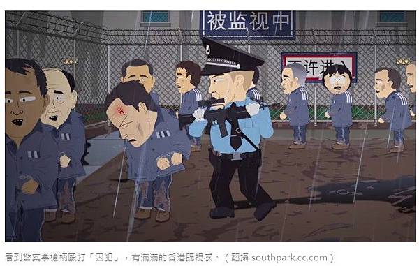 看到警察拿槍柄毆打「囚犯」,有滿滿的香港既視感。(翻攝 southpark.cc.com)