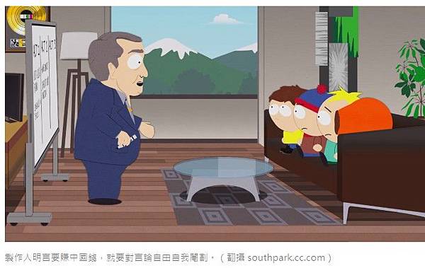 製作人明言要賺中國錢,就要對言論自由自我閹割。(翻攝 southpark.cc.com)