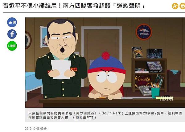 南方四賤客續向中國開砲! 暗諷NBA詹姆斯「舔共」 - 國際 - 自由時報電子報