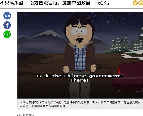 不只高級酸! 南方四賤客新片飆罵中國政府「FxCK」