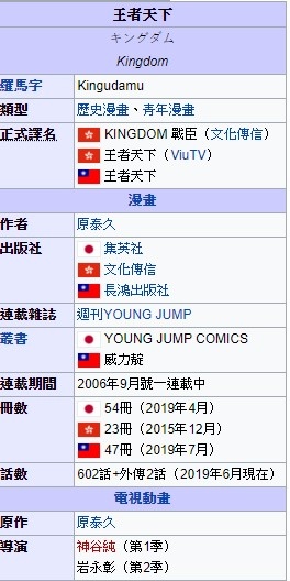《王者天下》(日語:キングダム)是漫畫家原泰久於2006年開始在集英社雜誌《週刊YOUNG JUMP》上連載的漫畫,2012年改編成同名電視動畫。