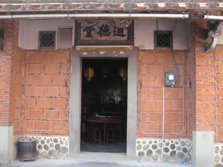 說明:竹北通德堂為一堂四橫屋之傳統客家建築,整體配置為長方形,前有禾埕,後有果園,並有水圳圍繞,左右兩邊則為鄭家之菜園。堂屋有圍牆區分內外,天井為水泥鋪面,立面以斗子砌牆為主,作工精緻,傍晚時陽光照射牆面,色澤十分美麗。室內為傳統客家使用方式,正身明間為廳下空間,擺設莊重,不失為家族之公廳。左右則為居住空間及灶下,右橫屋多為穀倉空間。目前鄭家後代還在管理當中,建築格局完整作工講究、樸實無華。