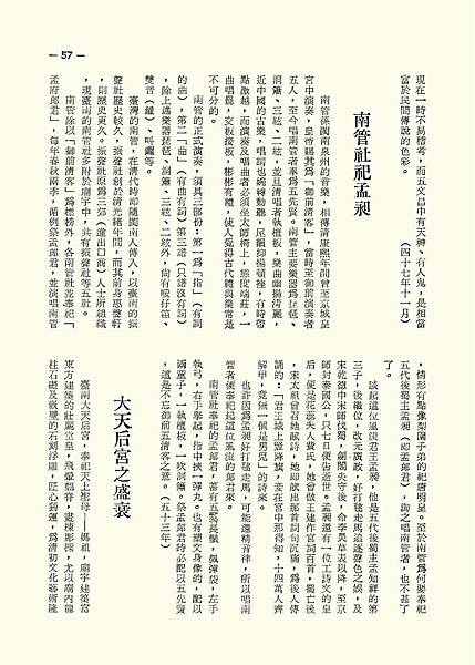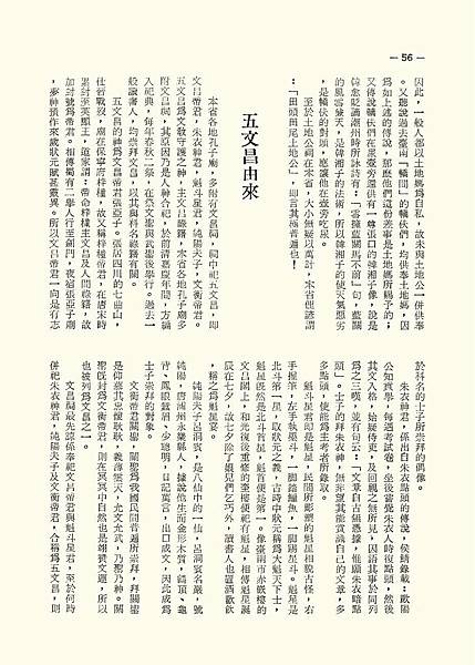 五文昌由來 本省各地孔子廟,多附有文昌祠,祠中祀五文昌,即文昌帝君,朱衣神君,魁斗星君,純陽夫子,文衡帝君。五文昌為文教守護之神,主文昌祿籍,本省各地孔子廟多附文昌祠,其原因乃是人神合祀,於前清嘉慶年間,方編入祀典,每年春秋二祭,在祭文聖與武聖後舉行。過去一般讀書人,均崇拜文昌,以其與科名祿籍有關。 五文昌的神為文昌帝君張亞子。張居四川的七曲山,仕晉戰歿,廟在保寧府梓種,故又稱梓種帝君,在唐宋時累封至英顯王,道家謂:帝命梓權主文昌及人間祿籍,故加封號為帝君。相傳蜀有二舉人行至劍門,夜宿張亞子廟,夢神預作來歲狀元賦甚靈異。所以文昌帝君一向是有志於科名的士子所崇拜的偶像。 朱衣神君,係出自朱衣點頭的傳說,侯鯖錄載:歐陽公知貢舉,每遇考試卷,坐後嘗覺朱衣人時復點頭,然後其文入格,始疑侍吏,及回視之無所見;因語其事於同列為之三嘆,並有句云:「文章自古無憑據,惟願朱衣暗點頭」。士子的拜朱衣神,無非望其能賞識自己的文章,多多點頭,使能為主考者所錄取。「魁斗星君即是魁星,民間所雕塑的魁星相貌古怪,右手握筆,左手執墨斗,一脚踏鱷魚,一脚踢星斗。魁星是北斗第一星,取狀元之義,古時中狀元稱為大魁天下士,魁星既然是北斗首星,魁首便是第一。像臺南市赤嵌樓的文昌閣上,和光復後重修的奎樓便祀有魁星,相傳魁星誕辰在七夕,故七夕除了娘兒們乞巧外,讀書人也置酒歡飲,稱之為魁星宴。一純陽夫子呂洞賓,是八仙中的一仙,呂洞賓名嚴,號純陽,唐清州永樂縣人,據說他生而金形木質,鶴頂、龜背、鳳眼蠶眉、少聰明,日記萬言,出口成文,因此成為士子崇拜的對象。 文衡帝君關聖,關聖為我國民間普遍所崇拜,拜關聖是仰慕其忠懷耿耿,義薄雲天,允文允武,乃聖乃神。關聖既封為文衡帝君,則在冥冥中自然也是翊贊文運,所以也被列為文昌之一。「文昌祠最先諒係奉祀文昌帝君與魁斗星君,至於何時併祀朱衣神君,純陽夫子及文衡帝君,合稱為五文昌,則現在一時不易稽考,而五文昌中有天神、有人鬼,是相當富於民間傳說的色彩。 (四十七年十一月)