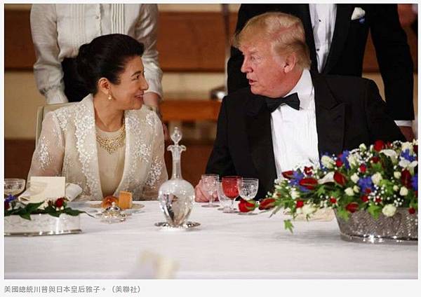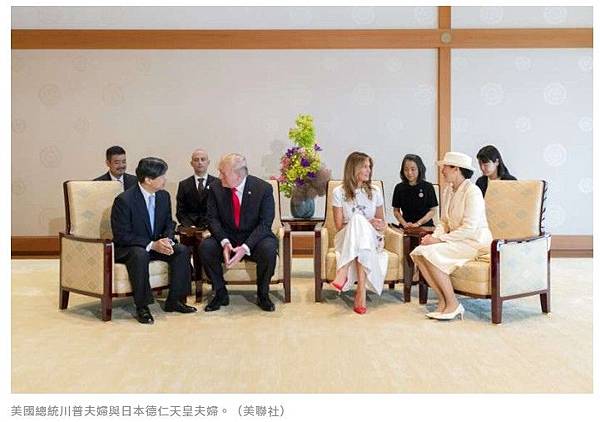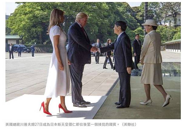 目前正在日本訪問的川普27日一早趕赴東京都的千代田區,在皇宮警察樂隊的演奏聲中,川普車隊9時從正門駛入皇居,準備拜訪剛剛繼位的日本天皇德仁與皇后雅子。9時20分許,打上鮮紅領帶的川普偕同一身典雅白色洋裝的夫人梅蘭妮亞下車與天皇夫婦招呼寒暄,美日媒體此時都注意到,德仁雅子與過去的天皇夫婦完全不同,因為這是一場不需要翻譯的會面。對雅子來說,尤其如此。