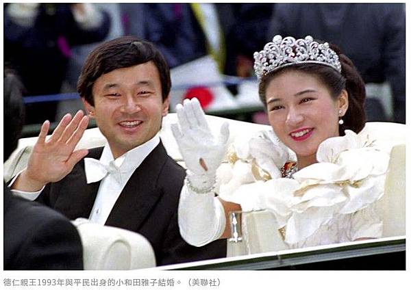 1993年6月,當時還是皇太子的德仁親王與小和田雅子舉行世紀婚禮,由於嫁入皇室,雅子從此拋棄了自己的姓氏小和田,也被迫放棄了自己的外交官生涯,甚至因為適應不良罹患憂鬱症。澳洲記者班·希爾斯(Ben Hills)出版的《雅子妃:菊花王朝的囚犯》(Princess Masako : Prisoner of the Chrysanthemum Throne),直指雅子背負了龐大生子壓力、加上失去工作舞台,讓這位嫁入皇室的才女成了「菊花王朝的憂鬱囚徒」。在嫁給德仁的26年後,當年的雅子妃晉升成為雅子皇后,這位昔日的外交才女也再次站上了外交舞台。