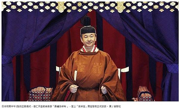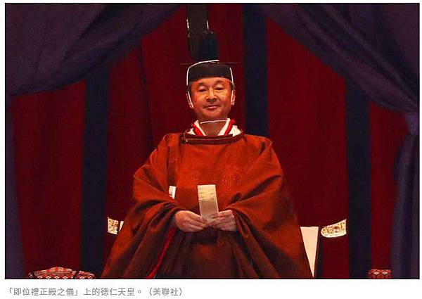 日本《讀賣新聞》報導,德仁今天以59歲又2個月的年齡即位,是從8世紀後半以來,在有紀錄出生年月日的日皇中第2高齡。