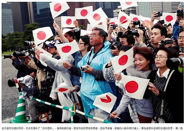 2019年五月一日,日本新天皇、現年59歲的皇太子德仁上位,新年號「令和」。10月22日舉行「即位禮正殿之儀」,德仁將成為世界上最古老的君主政體的第126位皇帝。
