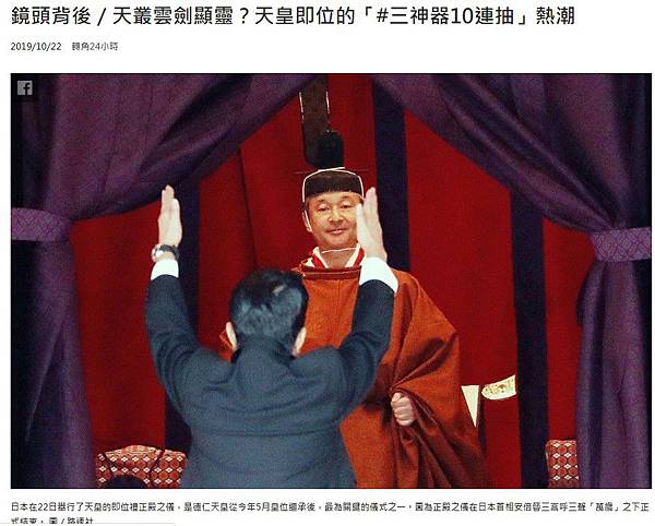 2019/10/22 鏡頭背後/天叢雲劍顯靈?天皇即位的「#三神器10連抽」熱潮 | 過去24小時 | 轉角國際 udn Global http://bit.ly/2Wbmv84