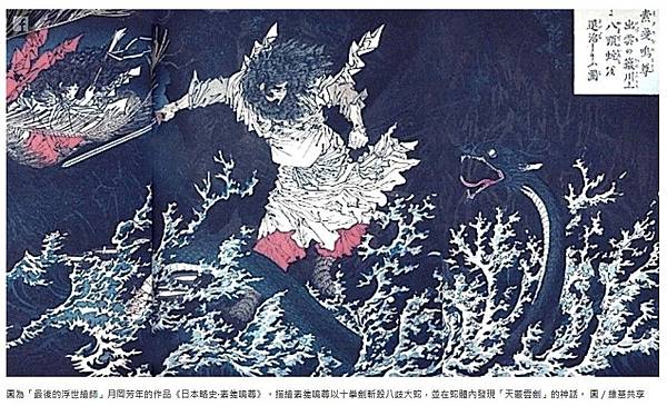 圖為「最後的浮世繪師」月岡芳年的作品《日本略史·素戔嗚尊》。描繪素戔嗚尊以十拳劍...