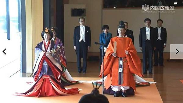 (中央社)日本時間上午11時10分在「松之間」舉行「即位後朝見之儀」,是德仁即位後與新皇后雅子首度與代表國民的人士見面的儀式,行政、立法及司法3權首長、地方公共團體代表等約300人參加。