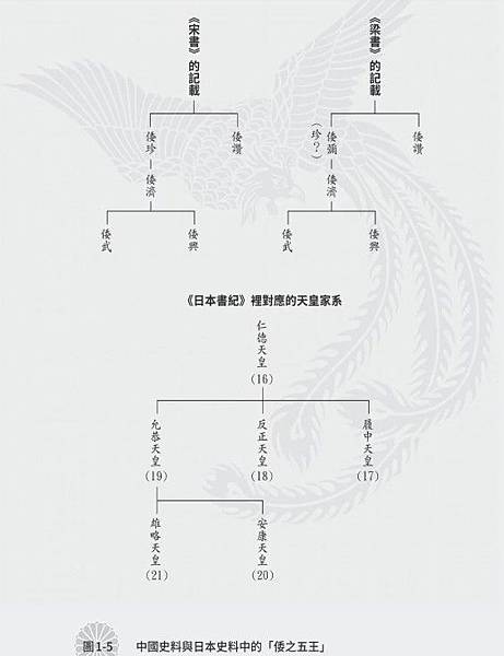 順帶一提,目前史學界利用最後一位倭王倭武在中國官史的活動時代,推定他是雄略天皇。然後,再按照以上的親族關係,進一步推斷倭讚、倭珍,同族的倭濟、倭興分別是仁德、履中、允恭和安康四位天皇,但這樣的說法還沒辦法「驗明正身」。