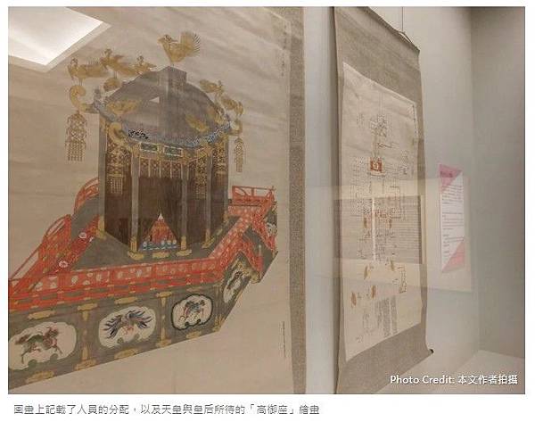 圖畫上記載了人員的分配,以及天皇與皇后所待的「高御座」繪畫