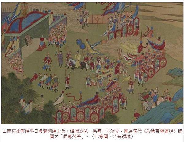 山西巡檢郭進平日負責訓練士兵,緝捕盜賊,保衛一方治安。圖為清代《彩繪帝鑒圖說》插圖之「屈尊勞將」。(示意圖,公有領域)