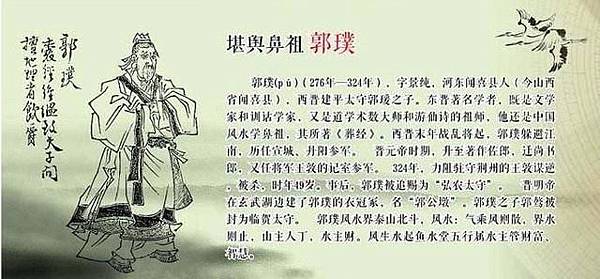 一身法術的大文學家郭璞:經學家、文學家、方術家,註解包括《山海經》、《穆天子傳》、《爾雅》和《楚辭》等古籍。相傳風水典籍《葬書》(後世或稱為《葬經》詩賦更是冠絕一時,特別是十四首遊仙詩在文學史上有極高評價--- 風水奇書《青囊中書》