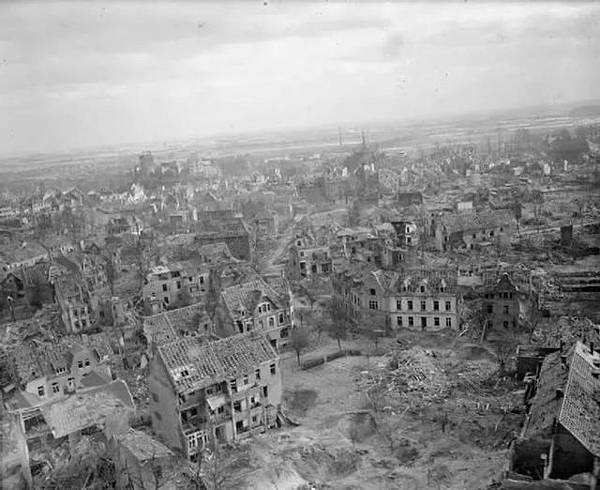 ▲被盟軍航彈所重創的德國小鎮——克萊沃(Kleve),而特勞特曼本人親眼見證了這座小鎮被航彈毀滅的時刻。