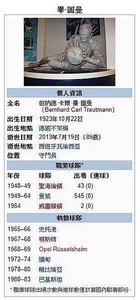 伯特·特勞特曼是德國足球的傳奇人物,他是英國人眼中最棒的德國門將,也是德國人心中永遠的足球硬漢。他以高超的技術、頑強的意志和偉大的奉獻精神贏得了這兩個當時水火不容的民族乃至是全世界的尊重。