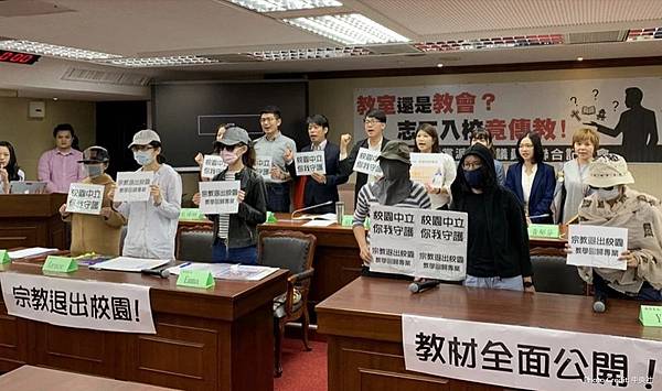 她指出,有些孩子家裡可能信仰佛教或其他宗教,為什麼要聽這些課程?她希望教育處能按照教育基本法第六條規定實行,幫忙把關進入學校的所有教材。