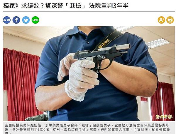 〔記者張議晨/宜蘭報導〕宜蘭縣警局巡佐林世光,擔任派出所所長期間協助吳姓線民處理債務,被債主廖姓男子拒絕;林竟與吳男合夥「栽槍」,由吳男在廖租的車上私藏改造手槍、子彈,等廖男取車後,再夥同員警逮人;直到3年前因吳男自首,全案才曝光,林借公務員權力讓廖男受害,宜蘭地方法院林員重傷警察形象,依法加重其刑,判他3年6個月徒刑。