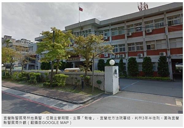 宜蘭縣警察局林姓員警,任職主管期間,主導「栽槍」,宜蘭地方法院審結,判林3年半徒刑。圖為宜蘭縣警察局外觀(翻攝自GOOGLE MAP)