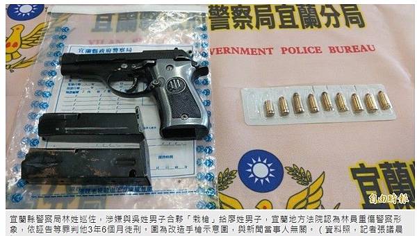 宜蘭縣警察局林姓巡佐,涉嫌與吳姓男子合夥「栽槍」給廖姓男子,宜蘭地方法院認為林員重傷警察形象,依誣告等罪判他3年6個月徒刑。圖為改造手槍示意圖,與新聞當事人無關。(資料照,記者張議晨攝) 獨家》求績效?資深警「栽槍」 法院重判3年半 - 社會 - 自由時報電子報