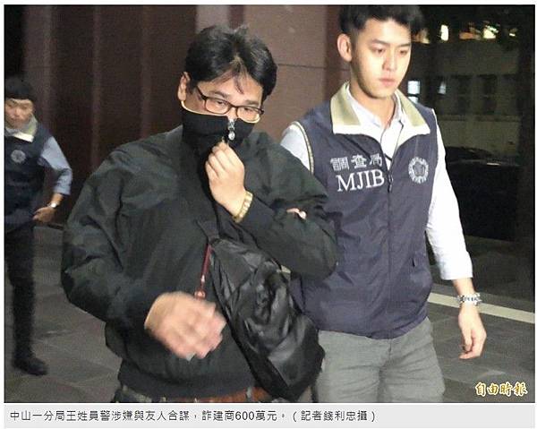 中山一分局王姓員警涉嫌與友人合謀,詐建商600萬元。(記者錢利忠攝)