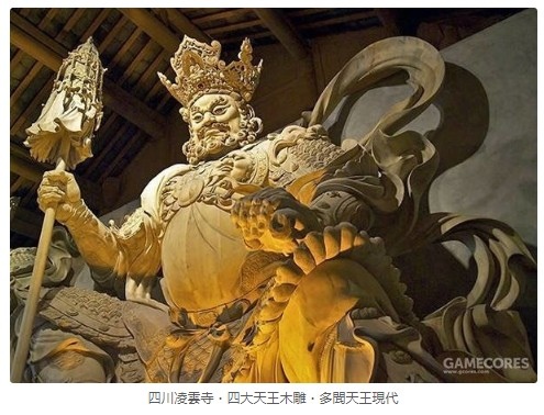 四川凌雲寺・四大天王木雕・多聞天王現代
