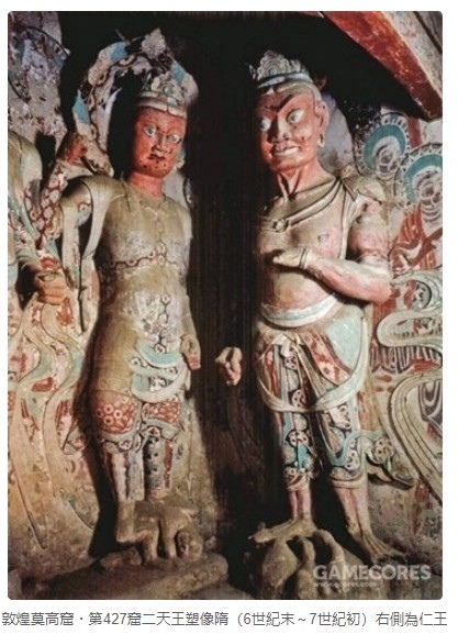 敦煌莫高窟・第427窟二天王塑像隋(6世紀末~7世紀初)右側為仁王