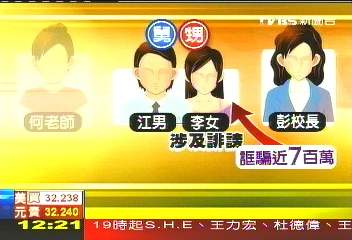 現任新竹縣尖石國中校長彭春蘭(五十三歲,苗栗人)於本月八日被警方依詐欺、恐嚇取財罪嫌送辦,檢方訊後諭令飭回、限制住居;同案竹北六家國中代課老師何榆柔(三十八歲),也被依詐欺、恐嚇取財罪嫌函送法辦。兩人目前仍在職。