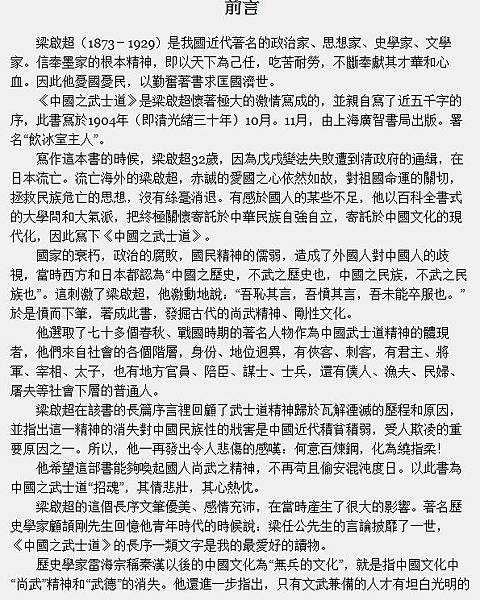 梁啟超是懷著極大的激情來寫這部書的,並親自寫了近五千字的序,為了這部書能在青年學子中廣泛閱讀,他還為教師們寫了供講解參考的《凡例》,他希望這部書能夠喚起國人尚武之精神,不再苟且偷安混沌度日,以此書為中國之武士道“招魂”,其情悲壯,其心熱忱。