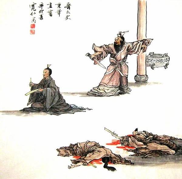 7、盡職盡責,即使犧牲生命在所不惜,例如齊太史的故事。這個故事講的是,春秋時期齊國的大臣崔杼弒君齊莊公,齊太史乃秉筆直書:「崔杼弒其君。」崔杼就殺了齊太史。太史的二個弟弟也如實記載,都被崔杼殺了。崔杼告訴太史第三個弟弟說「你三個哥哥都死了,你難道不怕死嗎?你還是按我的要求:把莊公之死寫成得暴病而死來寫吧」,太史弟弟正色回答「據事直書,是史官的職責,失職求生,不如去死。
