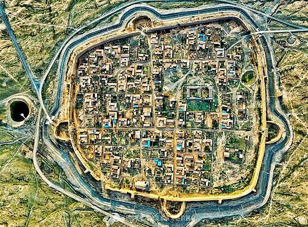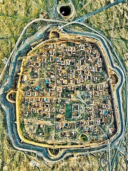 我沿著城牆邊上的斜坡登上了這十幾米高的城牆,放眼望去,約半公里見方的城內,房舍鱗次櫛比,縱橫的街道井井有條,從南門往正北有一條端直的街道直達北城門。