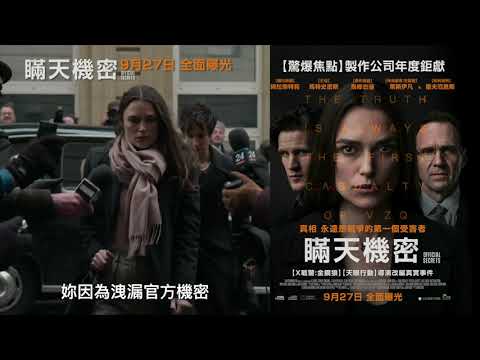 改編自真人真事的電影《瞞天機密》(Official Secrets) 將在 9 月 27 日起於台灣震撼上映。本片是好萊塢演技派女星綺拉奈特莉 (Keira Knightley) 首度接演政治議題的作品,並在片中詮釋卯足全力,試圖阻止一場非法戰爭。