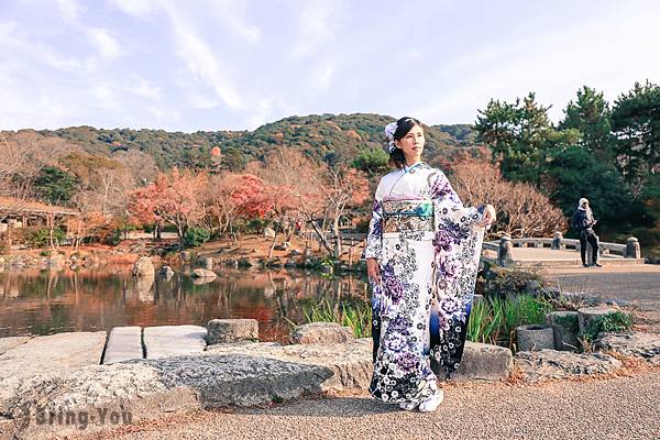 在京都神站搭乘100號公車至祇園站下車,[1]近八坂神社廣場的是京都春季最著名的賞櫻景點圓山公園