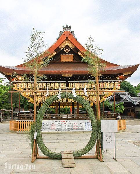 約於唐貞觀11年,因傳染病流行,日本民眾向該寺神祇祈求平安,此活動廣為流傳被稱為祇園祭。祇園祭為日本三大祭典之一,每年7月1日開於為期一個月,活動舉辦期間有工藝精緻的花車、神轎(山鉾)與彩球遊行,為京都府的重要活動之一。[3]