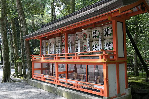 神社前向來展示傳統清酒木尊酒藏,只有宇佐神宮才有燒酌瓶祭品喔!