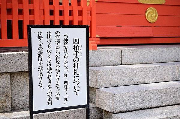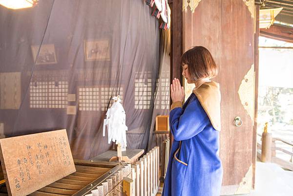終於要參拜了。參拜時要行「二禮二拍手一禮」,在行兩次禮後拍手兩下,最後再行一次深禮。