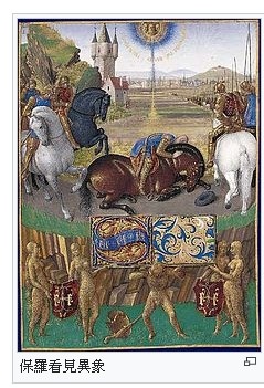 根據聖經記載,在成為基督的一個跟隨者之前,保羅起初認為傳耶穌是違背傳統猶太教信仰的異端,極力迫害基督徒。但後來他在往大馬色迫害門徒的途中,有大光從天上四面照著他,他就撲倒在地,聽見有聲音對他說:「掃羅、掃羅,你為什麼逼迫我?」 他說:「主啊,你是誰?」 主說:「我就是你所逼迫的耶穌。起來,進城去,你所應當做的事,必有人告訴你。」 與保羅同行的人站著說不出話來,聽見聲音,卻看不見人,保羅從地上起來,睜開眼卻不能看見什麼。有人拉著他的手,領他進了大馬士革,他三日不能看見,也不吃,也不喝。 在大馬士革,主所差的弟兄按手在保羅身上並說:「在你來的路上向你顯現的耶穌,就是主,差我來,叫你能看見,又被聖靈充滿。」 保羅的眼睛上,好像有鱗立刻掉了下來,他就能看見,恢復了視力,並且受浸[34]。之後成為教會主要的傳教者之一,將基督教信仰推廣到地中海各地。