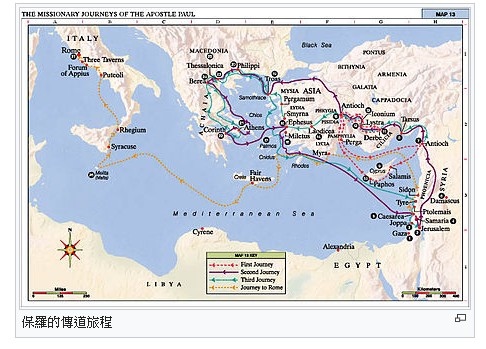 而保羅的第三次宣教旅程在52年至57年進行,以以弗所為基地,期間再次穿越馬其頓,旅程最後以耶路撒冷作為旅程的終點站。[44]